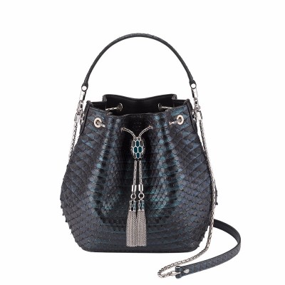 【包邮包税】BVLGARI/宝格丽 19秋冬新款 Serpenti Forever蛇首扣褶纹蟒蛇皮水桶包 288139