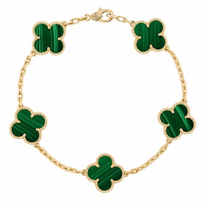 Vintage Alhambra手链,5个图案,黄金,孔雀石。