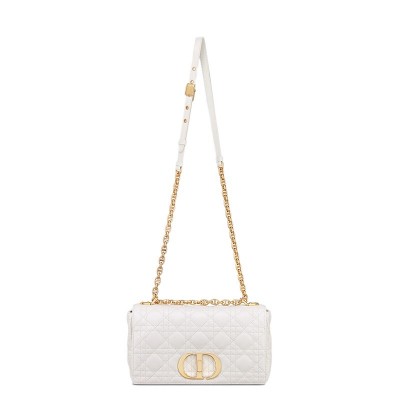 DIOR/迪奥 2021秋冬新款 CARO系列 女士中号象牙色柔软小牛皮藤格纹CD扭纹扣翻盖封口单肩斜挎包M9242UWHC_M35U